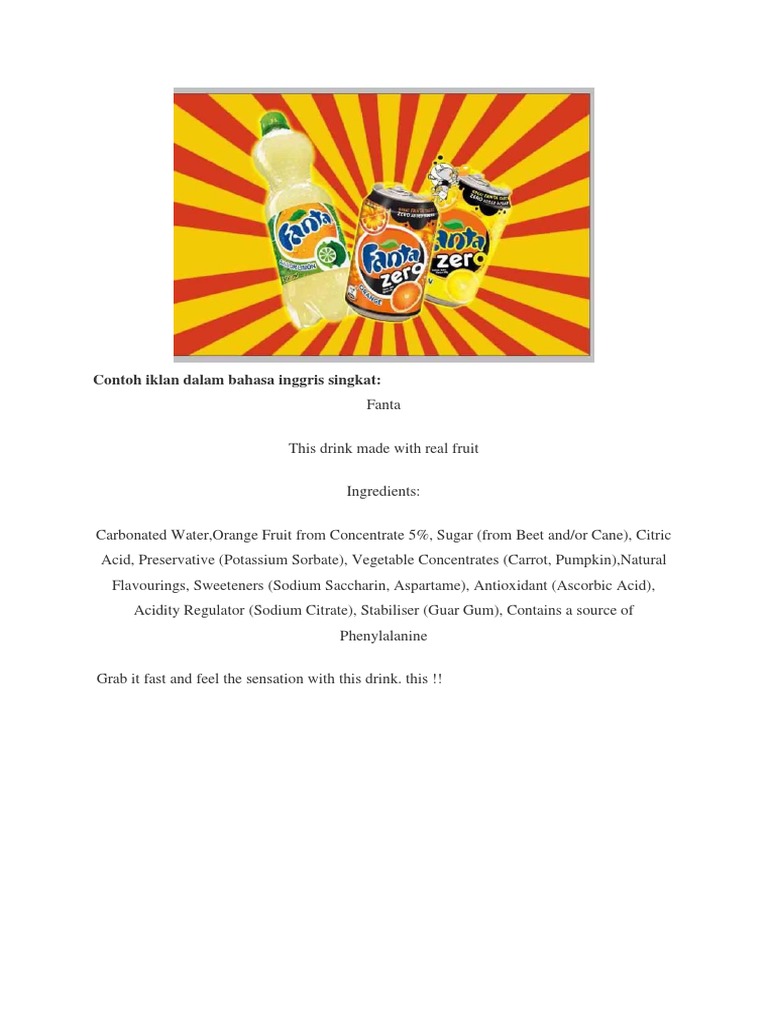 Tulisan descriptive text memiliki isi mengenai deskripsi pada suatu benda, lokasi benda, sifat dari benda itu, karakteristik benda, bentuk. Teks berita dalam bahasa inggris disebut dengan 'news item'. Contoh surat singkat dalam bahasa inggris. Saya juga lengkapi dengan beberapa contoh penggunaannya dalam kalimat. Contohtext kali ini akan membagikan beberapa contoh iklan bahasa inggris mengenai baju dan toko kami buka dari jam 10 pagi sampai jam 5 sore.
